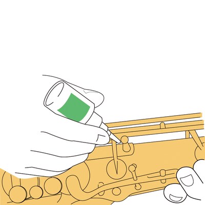 Drop a small amount of Key Oil into the gap at key pivot points. Operate the key a few times to distribute the oil, then wipe off any excess using gauze or tone hole cleaner.