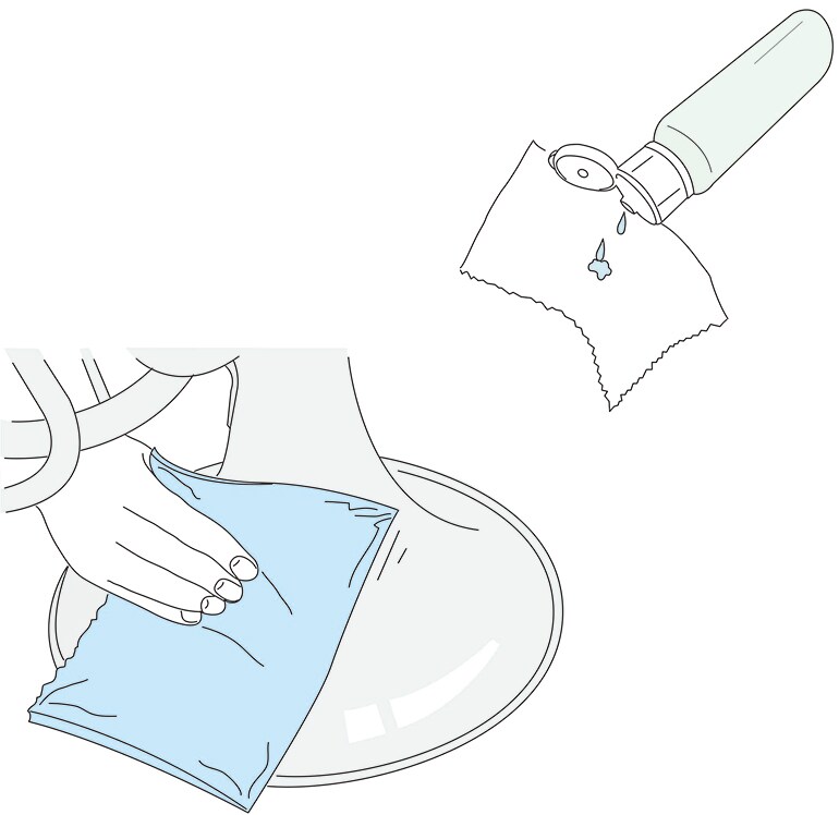 Apply using the polishing gauze or the polishing cloth.