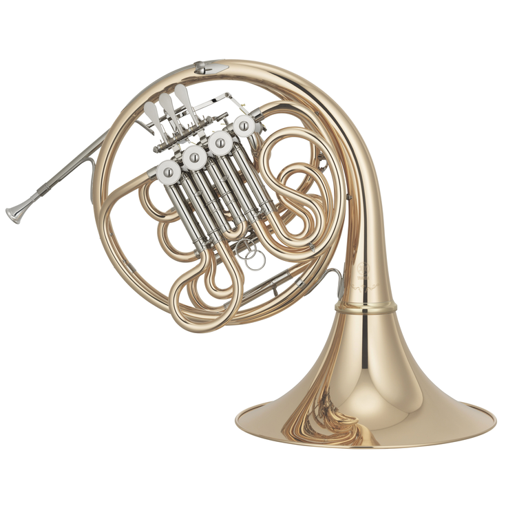 Professional Series Full Double Horn, Key: F/Bb, Valves: 4 rotary valves, Bell size: M, Bell type: Detachable, Bore: 12.0mm (0.472"), Valve casings: Nickel silver, Valve rotors: Solid, Lever action: String, Finish: Clear lacquer