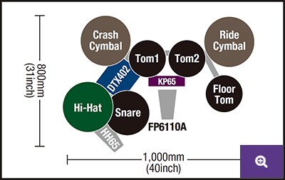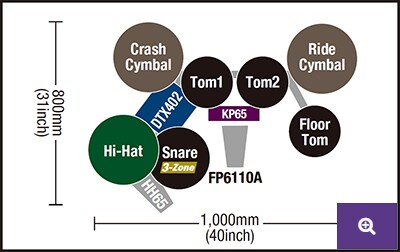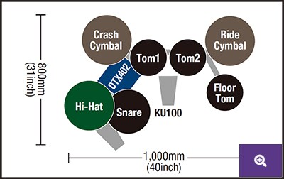 • Combining 3-zone snare pad and real bass drum pedal action.