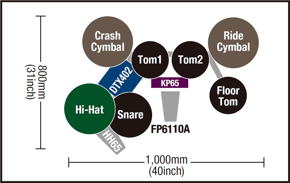 • KP65 kick pad and a genuine Yamaha bass drum pedal FP6110A provide smooth action and real feel.