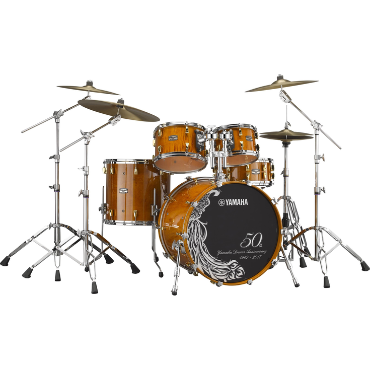 Based on Yamaha's renowned Absolute Hybrid Maple kit, the 50th anniversary model features shells with outer plies made from two varieties of beautiful exotic wood, and gold hook lugs that recall the revered Maple Custom set of yesteryear. Specially processed badges and front heads add to the luxurious feel of this limited release of fifty unique, five-piece kits.