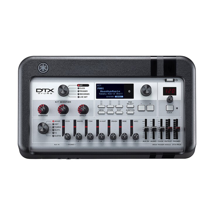 The DTX-PROX is a new flagship drum module that allows any drummer to intuitively customize its high quality sounds. Featuring real sampled drum sounds and real room ambience, sampled in world renowned studios, KIT MODIFIER knobs that allow you to easily and dramatically change sounds with a simple turn, and LED rotary faders that allow you to intuitively change any settings, the DTX-PROX gives form to your inner drumming creativity.