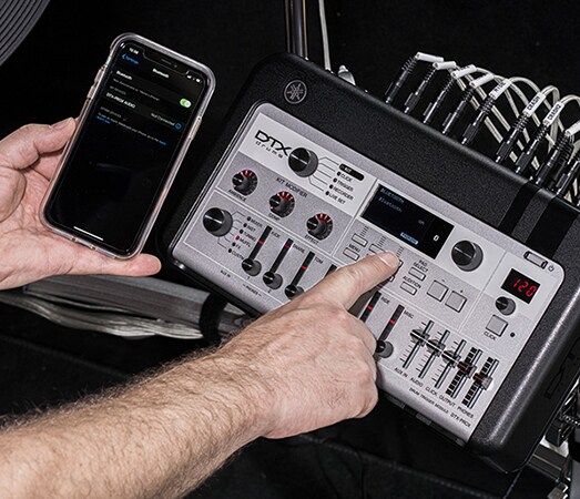The Bluetooth function of DTX-PROX allows you to wirelessly connect to smart devices, portable music players, and computers and have fun playing drums along with the audio. Furthermore, USB memory can be used to record audio from not only devices connected via Bluetooth, but also devices connected by AUX or USB cables. You can also record your own drum performances over the songs being played.
