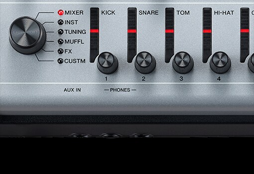 - AMBIENCE, COMP, and EFFECT KIT MODIFIER knobs that allow you to quickly create your own unique drum kit sounds