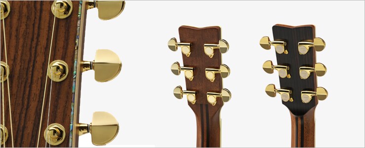 The 5-ply neck of mahogany and rosewood designed with a volute at the headstock plus a double action adjustable rod creates a neck with excellent strength and stability.*#26,36,56 have a volute at the head stock.