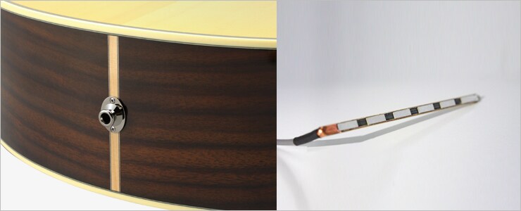 The SRT Zero Impact Pickup system is a newly developed passive type pickup configuration designed to minimize the pickup’s impact on the tone and traditional appearance of the instrument. The system utilizes individual piezoelectric elements for each string to faithfully reproduce the dynamic sound of the L Series and give the instrument outstanding presence when playing in a band.*L56,36,26 don't have this Pickup.