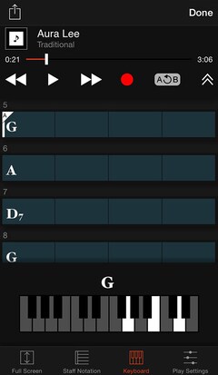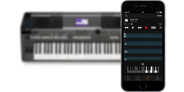 Connecting your device to your instrument allows you to transmit the audio playback of the song to the supported instrument so you can listen through the instrument's speakers. The Chord Tracker app will also transfer the chord information to the instrument. You can even record your performance on the device as an audio file and share it with others via email (AAC or WAV format).