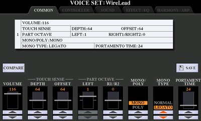 Newly implemented Half bar fill-in, Mono legato function expand the variation of your performance. Live control settings can be immediately called up from registration memory.