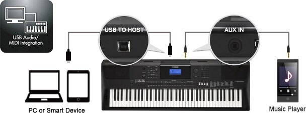 The PSR-EW400 features audio transfer through the USB TO HOST terminal*. You can record your performance to your computer or smart device.