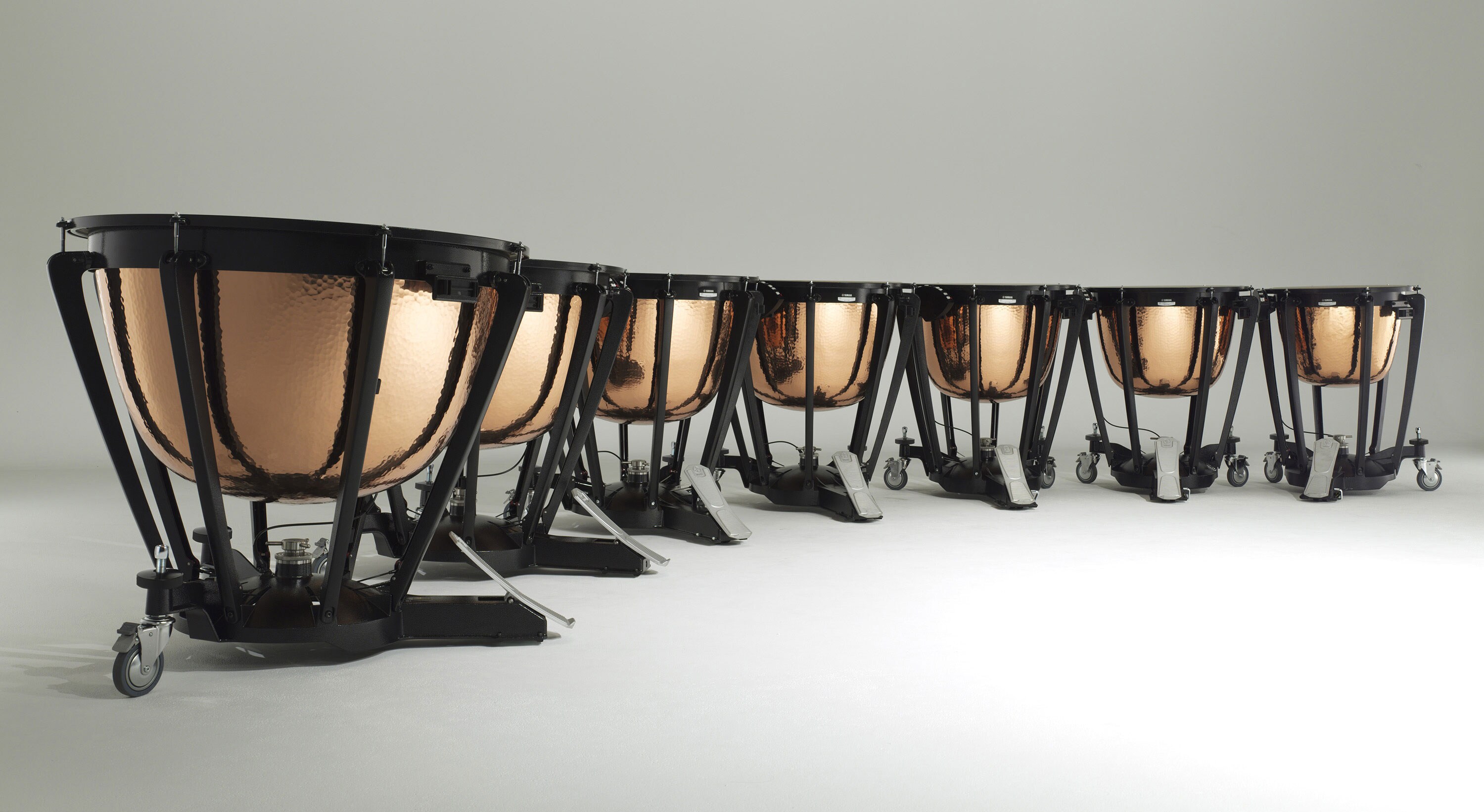 The top-of-the-line timpani series features cambered hammered copper bowls and the pedal balance spring system. The cambered bowls deliver ample volume as well as optimum resonance and decay. The lineup includes 24-inch and 27-inch models for expanded musical potential.