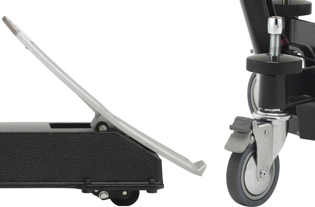The main casters include a one-touch lock mechanism that contributes to fast, sure setup. In addition to the main caster lock mechanism an auxiliary brake has been added to the pedal caster. The player can engage the auxiliary brake to securely lock the caster and prevent movement of the instrument.