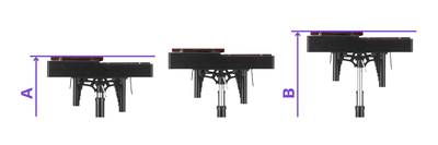 Distance from where the frame touches the ground to the top of the accidental tone bars Minimum height: 69 cm (A), Maximum height: 88 cm (B)
