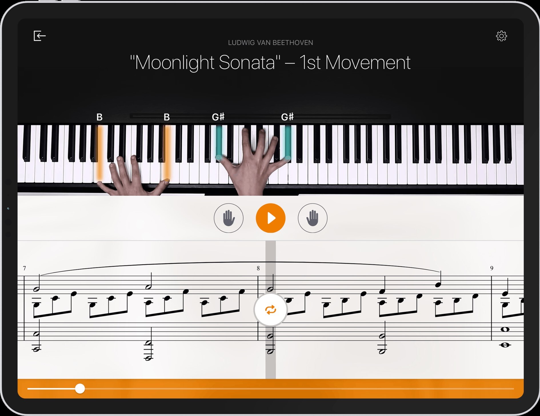 Flowkey allows you to isolate the notes for either the left or right hand, helping you familiarise yourself with the melody and accompaniment in stages. When you are ready to put it together, just click ‘both’.