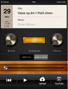 No need to carry your instrument with you! Simply disconnect the Yamaha i-MX1 Cable and you can listen to your performance from the iPhone/iPad using the Piano Diary software synthesizer. Enjoy your performances whenever and wherever you are - from the iPhone/iPad or over the Internet from shared YouTube movies.