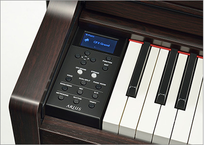 The Arius YDP-184 features a piano Voice created with samples of the Yamaha CFX flagship concert grand piano, as well as the incredibly realistic keyboard feel that recreates the sensation of playing an acoustic instrument. By using a similar hammer mechanism (with no springs) as is found in a grand piano, the GH3 keyboard action reproduces the touch of an acoustic instrument, from the heavier feel in the lower register to the lighter touch in the upper octaves. It also features a three-sensor configuration which accurately senses and interprets the behavior of the keyboard to create a response and feel very much like that of a grand piano. Moreover, the VRM function simulates the luscious resonance effect on acoustic pianos—where the sound of one string causes sympathetic vibration in other strings and the soundboard. You can customize the piano sound (in a special “Piano Room” setting group) by adjusting various parameters such as string resonance, damper resonance and touch response.