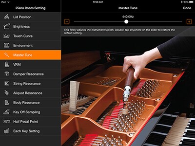 In addition to selecting piano voices, you can use Smart Pianist to adjust parameters such as the reverberation due to degree to which the grand piano lid is open, reverberation from echoes in performance venues, and other factors that affect the sound of the piano.