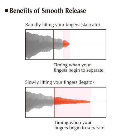 For instance, one of the major characteristics of a grand piano is the wide change in key touch, from playing soft to striking the keys hard. Grand pianos respond to different ways of playing with different key touches—the keys move lightly when played softly, and the keys respond firmly when played strongly.
