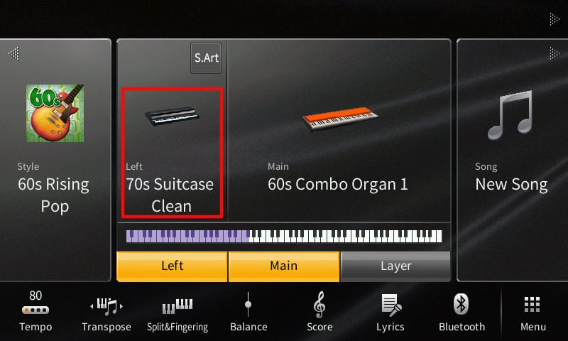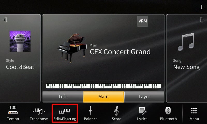 We have now selected two different organ sounds for different parts of the keyboard. We need to change the split point - where the two sounds change.