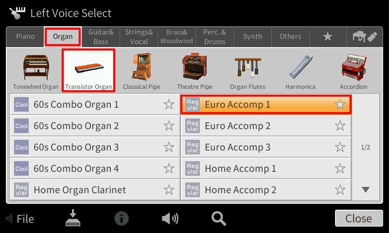 - Touch Organ, Transistor Organ and then Euro Accomp 1.