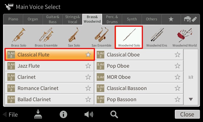 - Touch Woodwind Solo, then Classical Flute.