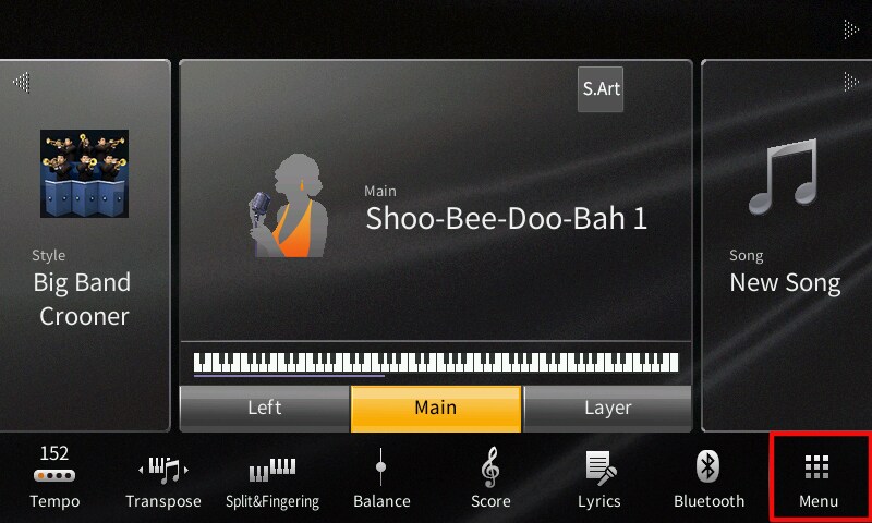 - Touch on the picture of the piano on the main screen.