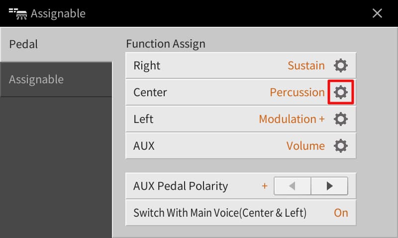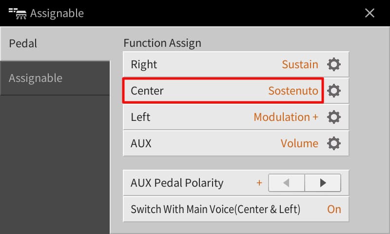- In the Function Assign area touch Sostenuto for the Centre pedal.