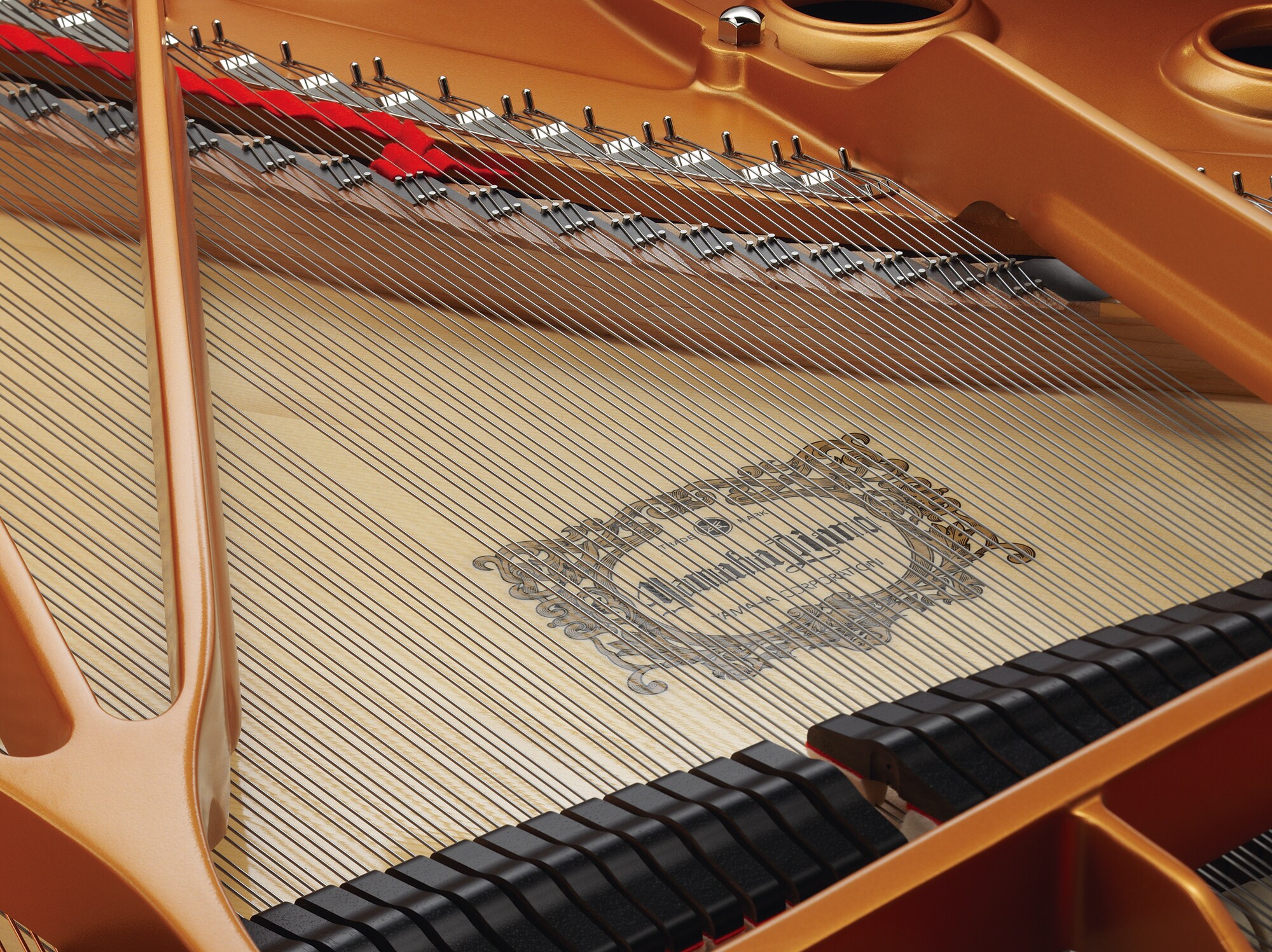 All aspects of the piano wire have been researched―from the wave patterns of various harmonics to the way it reacts when struck by the hammers. Both materials and manufacturing methods are very important, and Yamaha's bass strings are hand wound by skilled craftspeople.