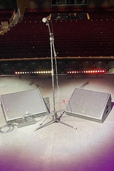 Yamaha DHR12M wedges on-stage before a live take