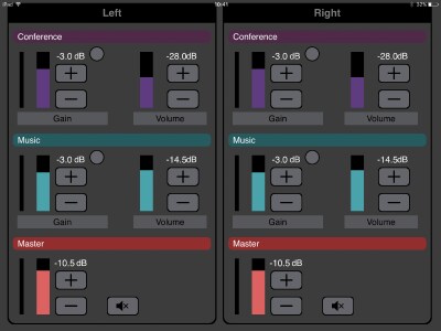 This product can be remotely controlled from a "ProVisionaire Touch" custom control panel for the iPad via a Wi-Fi network. For example, operations such as adjusting the volume balance of conference audio that's input to an MRX7-D signal processor and raising the speaker volume can be performed from a single screen of an iPad.