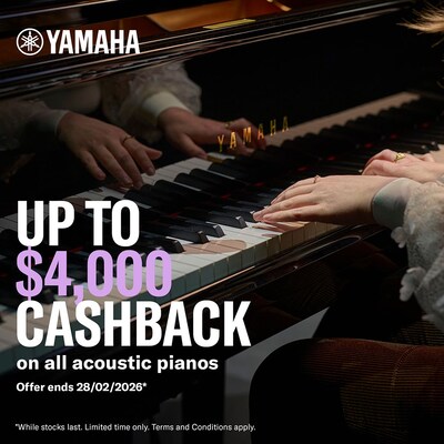 Get up to $4,000 cashback on all Yamaha acoustic pianos, and take part in a tradition of craftsmanship and innovation, in modern materials and sound to create pianos of exceptional tone and breathtaking beauty.